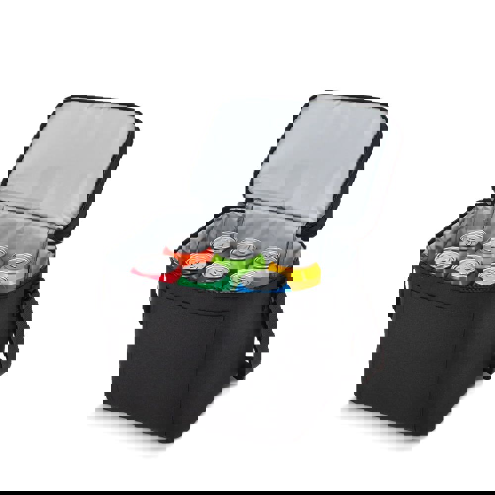 Koeltas van 600D gerecycled PET met een inhoud van 15L, voorzien van een groter ondervak en een kleiner bovenvak. Dankzij de isolerende PEVA-voering kun je warme en koude spullen gescheiden bewaren. De verstelbare schouderriem zorgt voor comfortabel dragen, ideaal voor onderweg.