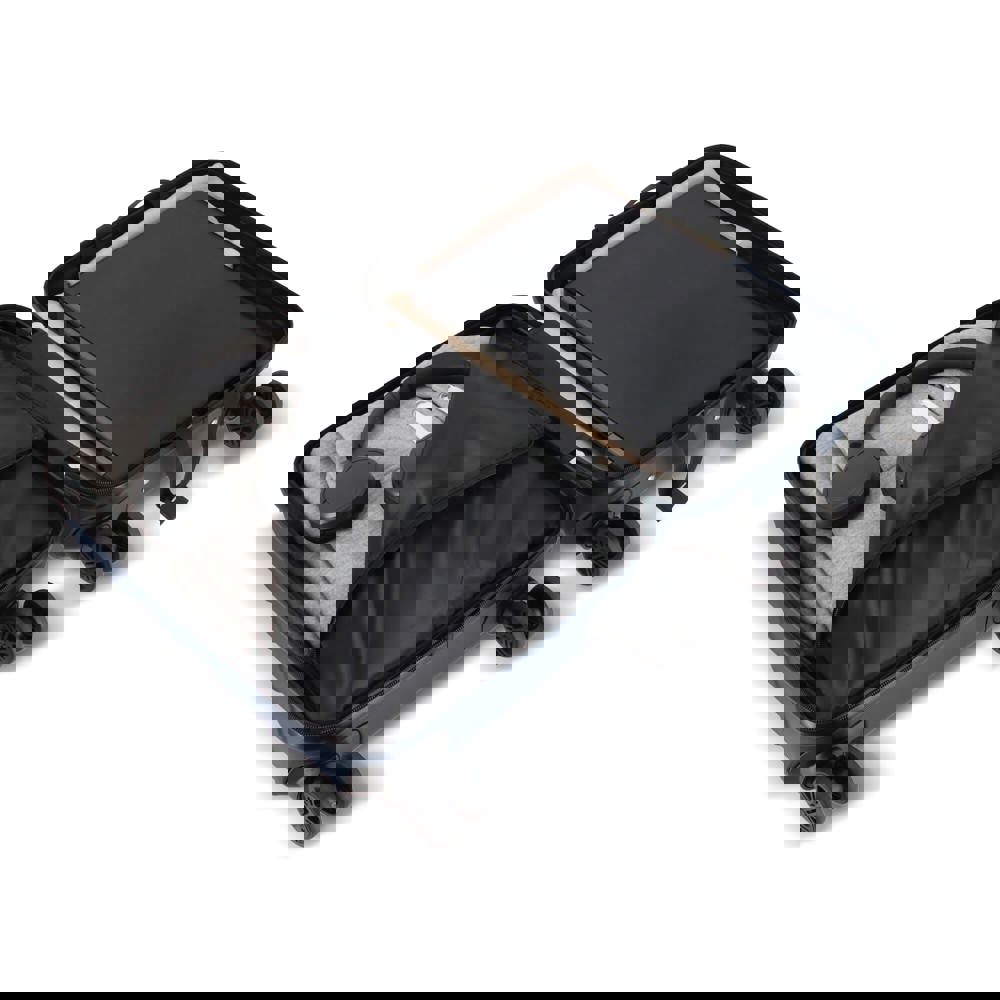 Deze trolley in cabinformaat biedt de ideale balans tussen opbergruimte en gebruiksgemak. Hij past in de bagagevakken van de meeste luchtvaartmaatschappijen en houdt je benodigdheden binnen handbereik. Voorzien van vier zwenkwielen, een cijferslot en een telefoonhouder in het handvat, waardoor wachten op luchthaven, station of perron aangenamer wordt.