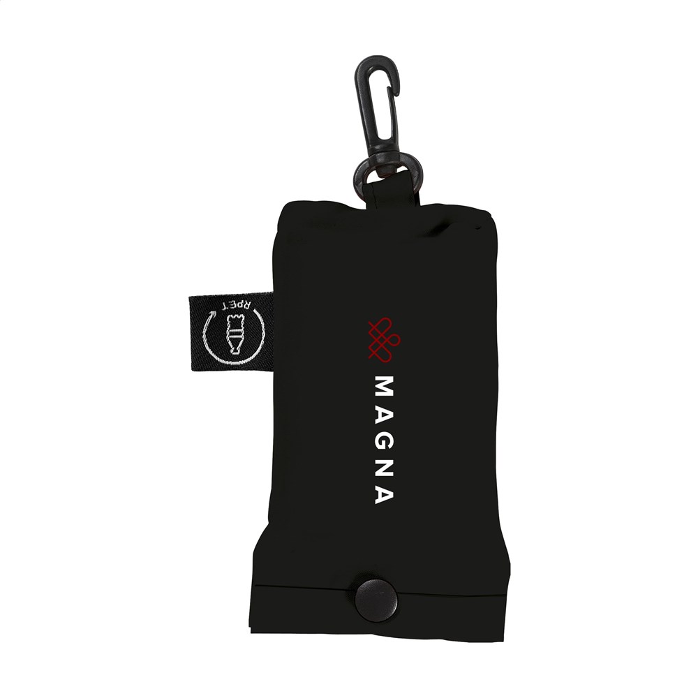 Opvouwbare winkeltas van 190T RPET polyester. Met opbergetui voorzien van drukknoop en karabijnhaak. De tas wordt ongevouwen met los etui geleverd. Afm. opgevouwen 6 x 2,5 x 12,5 cm. Totaal gerecycled materiaal: 90%. Inhoud ca. 8 liter.