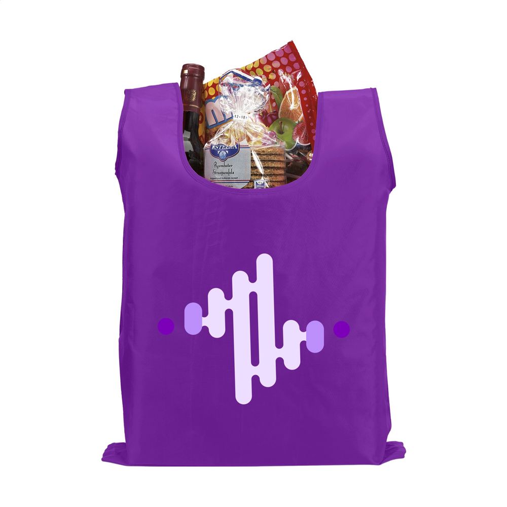 Opvouwbare winkeltas van 190T polyester. Met opbergetui voorzien van drukknoop en karabijnhaak. De tas wordt ongevouwen met los etui geleverd. Afm. opgevouwen 6 x 2,5 x 12,5 cm. Inhoud ca. 8 liter.