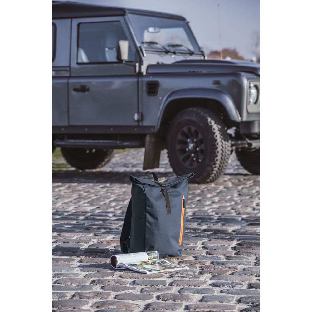 Stoere, praktische urban ‘roll-top’ rugzak van sterk 600D polyester met waterbestendige PVC binnenzijde, gedeeltelijk nylon gevoerd. De rugzak heeft één groot binnenvak, een insteekvak aan beide zijdes en een groot ritsvak aan de voorzijde. Met foam rugzijde voor meer draagcomfort, gewatteerde, en verstelbare schouderriemen. Met draaglus en een rolsluiting met kliksysteem aan de bovenzijde. De perfecte tas voor dagelijks gebruik. Inhoud ca. 18 liter.