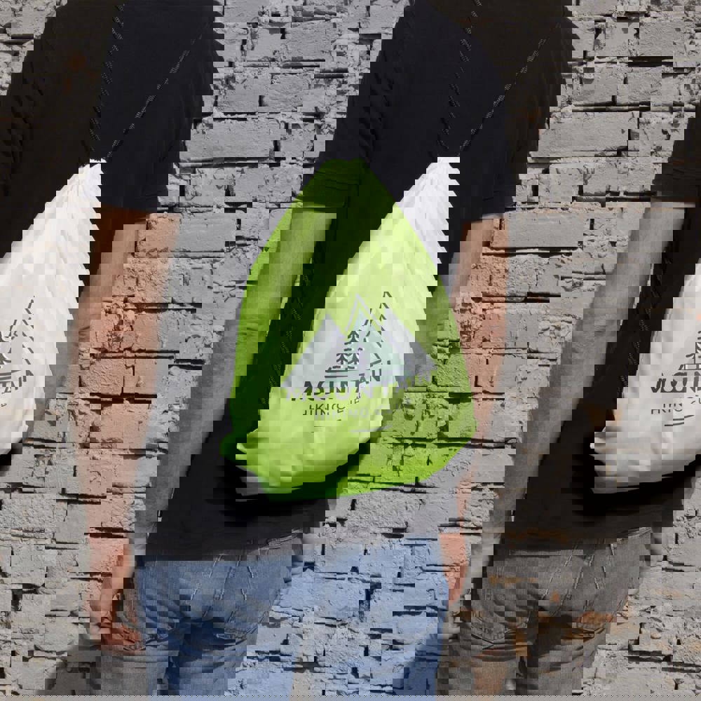 Polyester rugzak. Met trekkoord als sluiting.