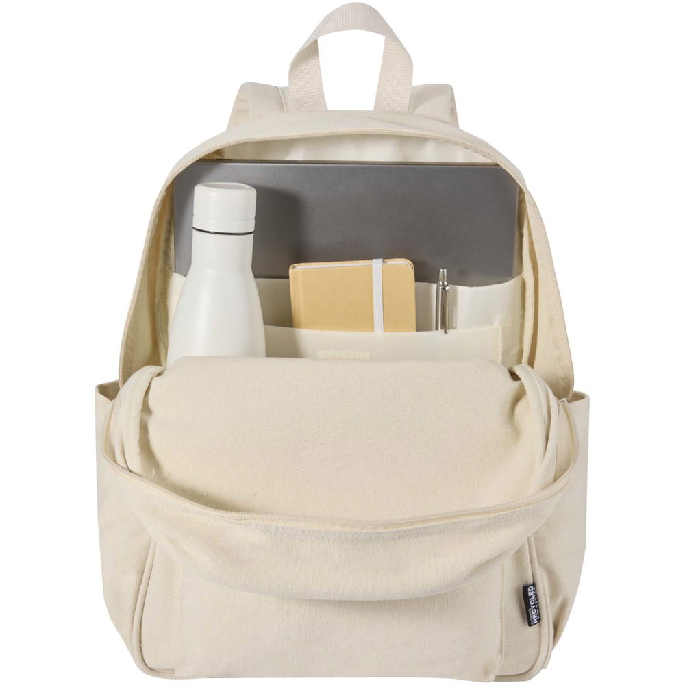 De Recanvas city rugzak combineert stijl met dagelijkse functionaliteit. Gemaakt van GRS-gecertificeerd, waterafstotend gerecycled canvas met een bijpassende RPET-voering. Bevat een gevoerd 15,6" laptopvak met extra sleeve, een voorvak met ritssluiting, twee zijvakken, ademende mesh rugzijde en verstelbare schouderbanden. Met een inhoud van 16 liter is deze rugzak perfect voor werk, studie of dagelijks gebruik.