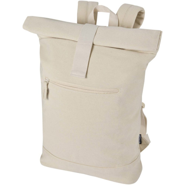 De Recanvas rolltop rugzak is gemaakt van GRS-gecertificeerd, waterafstotend gerecycled canvas met een bijpassende RPET-voering. Ontworpen voor dagelijks gebruik en veelzijdigheid, met een gevoerd laptopvak tot 14", een voorvak met ritssluiting, ademende mesh rugzijde en verstelbare schouderbanden voor comfort. De rolltop-sluiting biedt extra ruimte voor je spullen – ideaal voor woon-werkverkeer, reizen of outdoor avonturen. Inhoudsvolume: 16 liter.