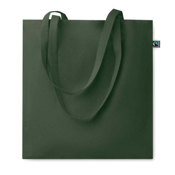 Boodschappentas van gekleurd Fairtrade katoen met lange hengsels. 140gr/m².