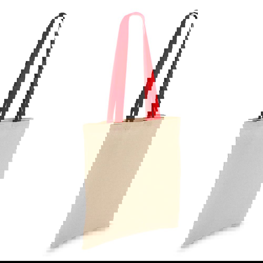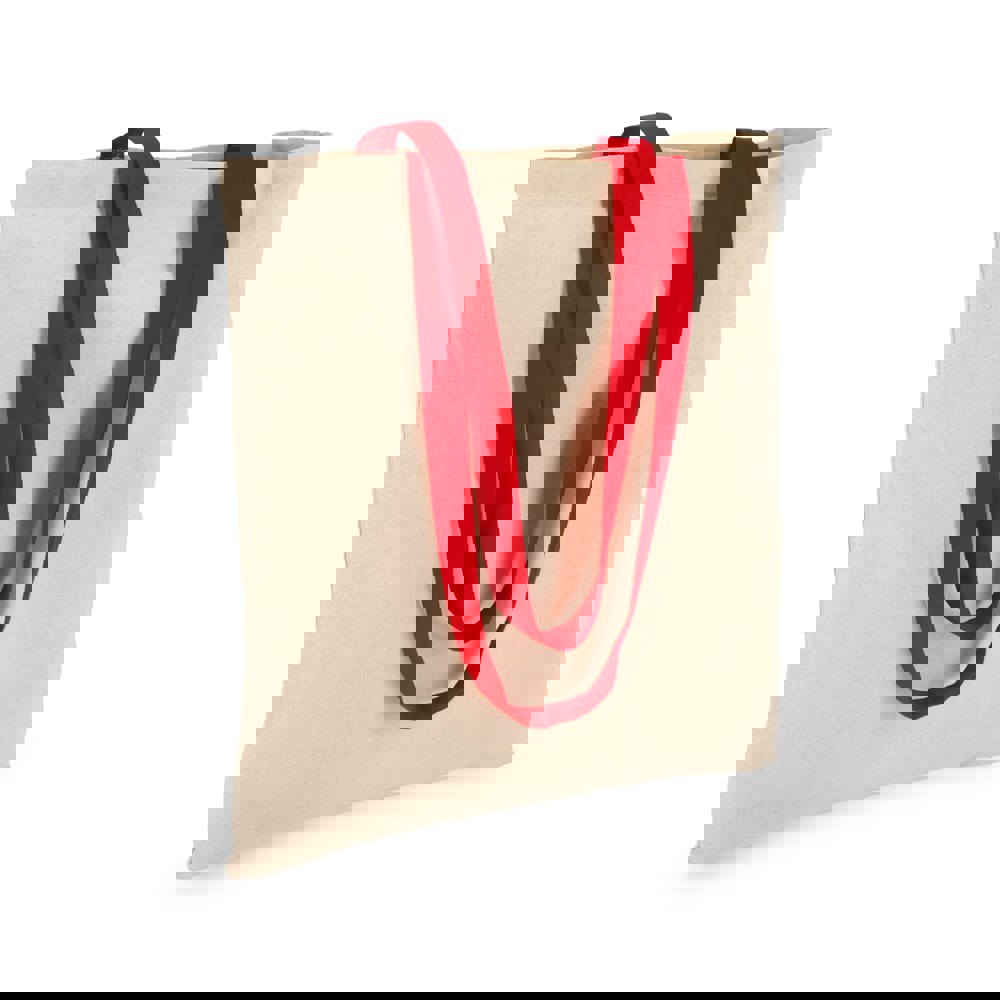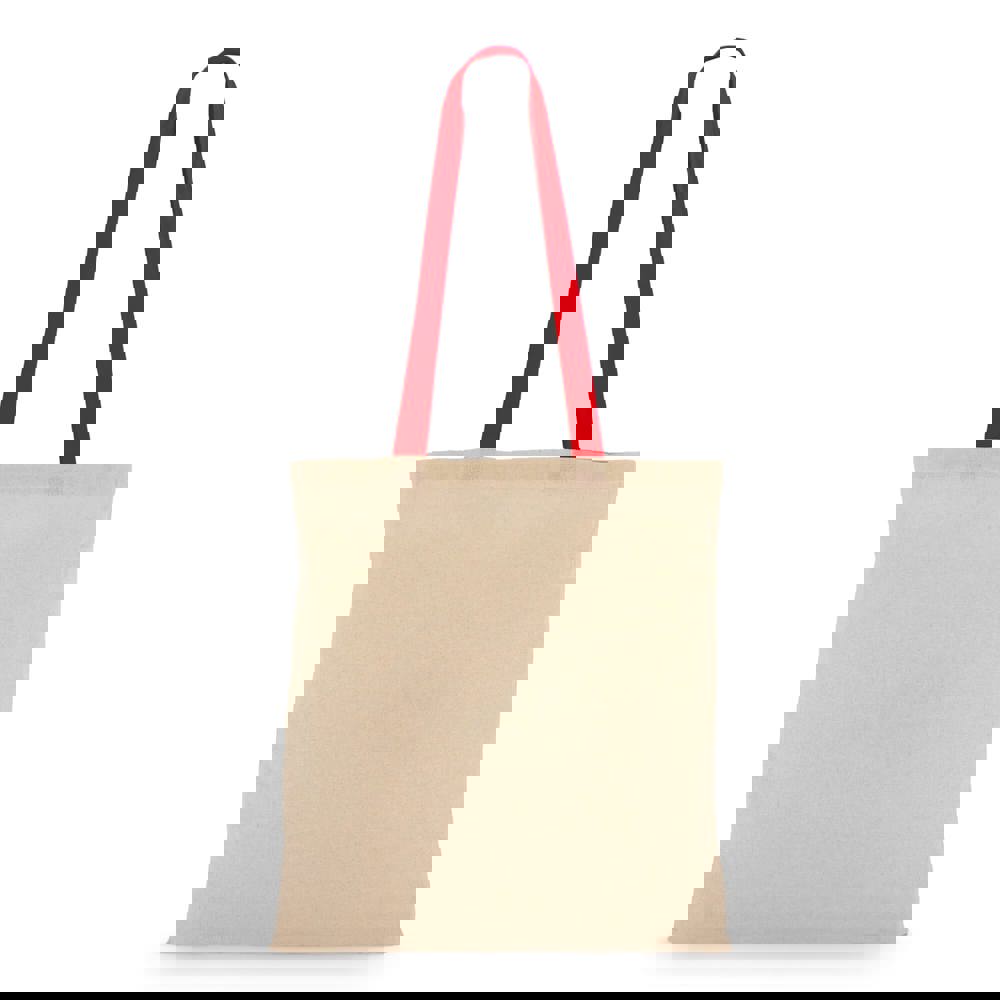 Klassieke katoenen tote van 140gsm met een naturel taslichaam en contrasterende gekleurde handvatten. Lange handvatten voor comfortabel dragen over de schouder. Oeko-Tex® gecertificeerd. Ideaal voor events, retail of dagelijks gebruik.