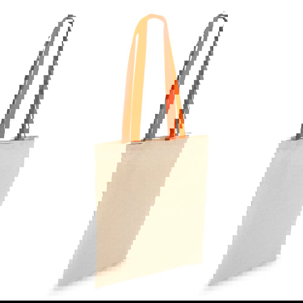 Klassieke katoenen tote van 140gsm met een naturel taslichaam en contrasterende gekleurde handvatten. Lange handvatten voor comfortabel dragen over de schouder. Oeko-Tex® gecertificeerd. Ideaal voor events, retail of dagelijks gebruik.