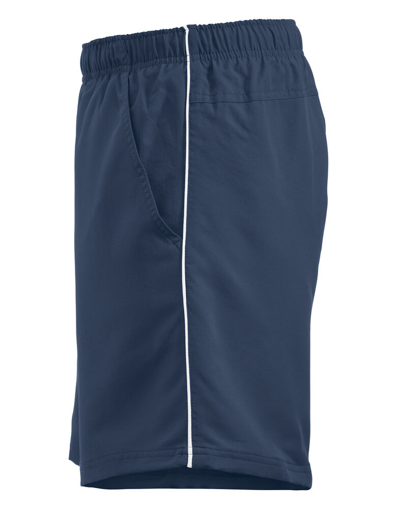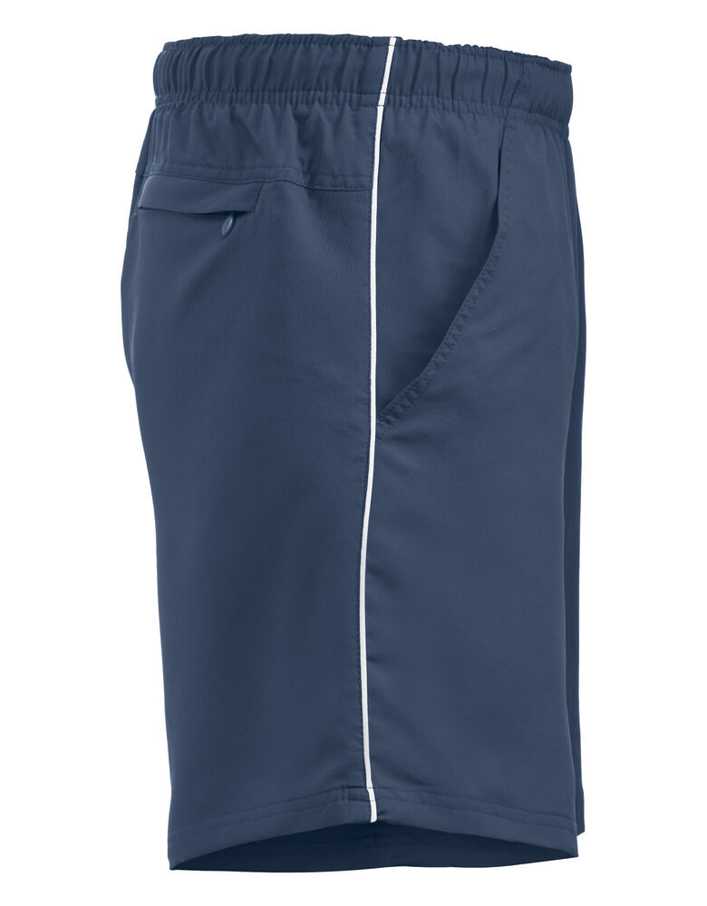 Sportieve korte broek met contrasterende details voor een subtiele, onderscheidende uitstraling. De short is voorzien van binnenbroek en professioneel afgewerkt met twee steekzakken, een achterzak met rits en elastiek met een trekkoord in de band voor een optimaal draagcomfort. Deze broek is ideaal te dragen bij intensieve inspanningen, zowel in werk als in sport.