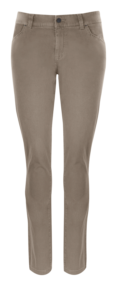Moderne, aansluitende broek in een aangenaam, zacht materiaal voor optimaal comfort en meer bewegingsvrijheid. De combinatie van katoen en elastaan garandeert dat de broek na elke wasbeurt telkens opnieuw zijn originele pasvorm terug aanneemt. De stof is nabehandeld met een enzyme wash, waardoor het materiaal voorgekrompen is en zacht aanvoelt. Bij het damesmodel zorgen opgestikte achterzakken en aangepaste zijzakken dan weer voor een extra vrouwelijke touch. YKK ritssluiting.