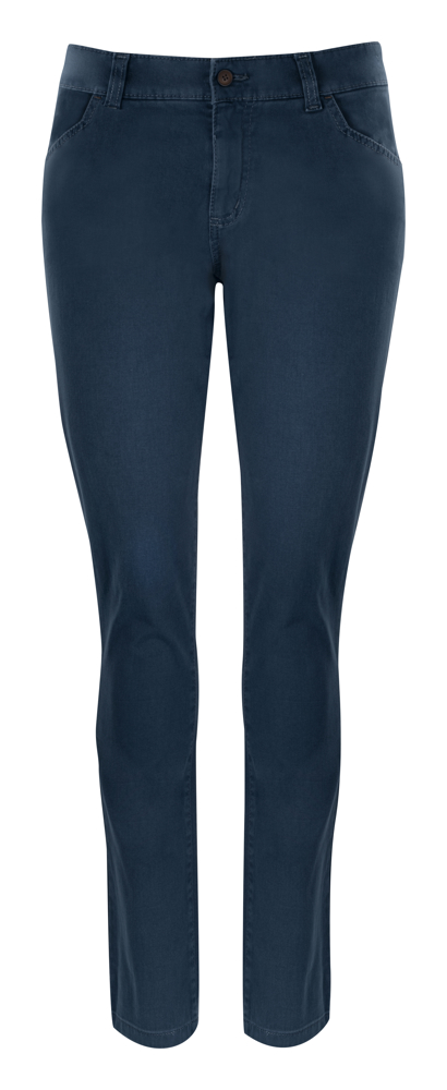 Moderne, aansluitende broek in een aangenaam, zacht materiaal voor optimaal comfort en meer bewegingsvrijheid. De combinatie van katoen en elastaan garandeert dat de broek na elke wasbeurt telkens opnieuw zijn originele pasvorm terug aanneemt. De stof is nabehandeld met een enzyme wash, waardoor het materiaal voorgekrompen is en zacht aanvoelt. Bij het damesmodel zorgen opgestikte achterzakken en aangepaste zijzakken dan weer voor een extra vrouwelijke touch. YKK ritssluiting.