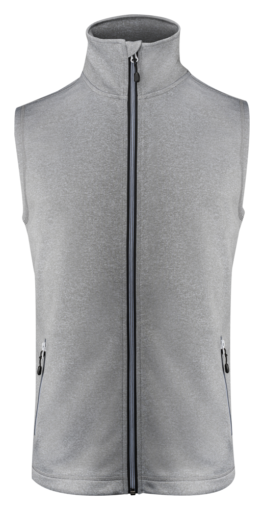 Sweatvest bodywarmer met lange ritssluiting in ringgesponnen stretchmateriaal. Contrasterende ritssluitingen, decoratieve flatlock naden en zijzakken met ritssluiting. SpunDyed. Oeko-Tex 100 gecertificeerd