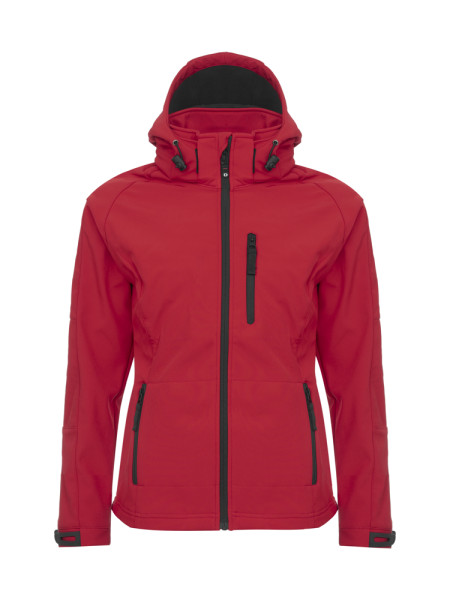 Softshell jas met contrasterende microfleece aan de binnenzijde. Wind- en waterbestendig (WP3000/MVP2000), afritsbare capuchon en manchetten verstelbaar met velcro. Elastisch trekkoord met stopper aan de capuchon en onderaan de zoom. Eén borstzak, twee zijzakken en één binnenzak.