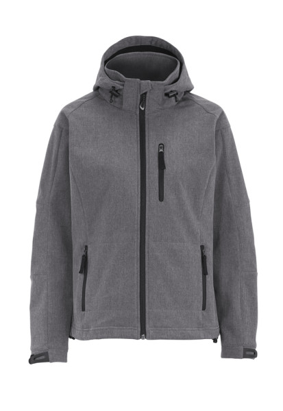 Softshell jas met contrasterende microfleece aan de binnenzijde. Wind- en waterbestendig (WP3000/MVP2000), afritsbare capuchon en manchetten verstelbaar met velcro. Elastisch trekkoord met stopper aan de capuchon en onderaan de zoom. Eén borstzak, twee zijzakken en één binnenzak.