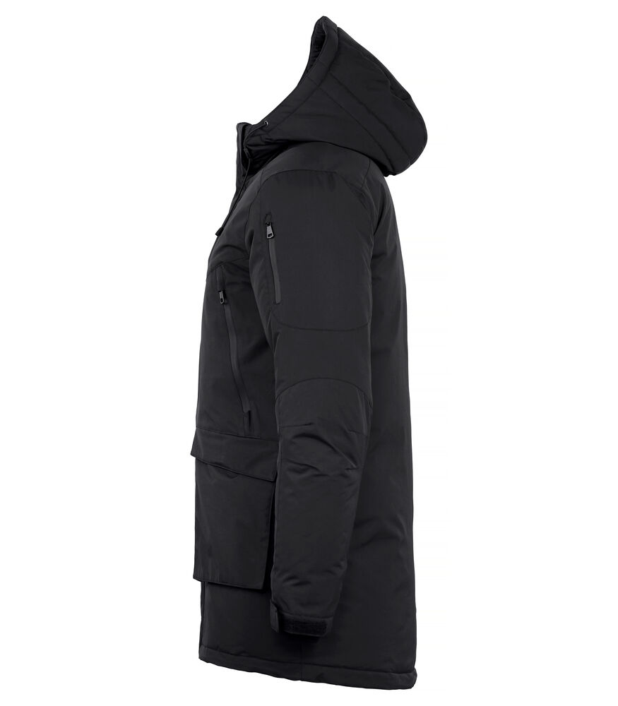 Een zwaar gewatteerde, unisex parka in expeditie-stijl. De parka is voorzien van een afneembare en verstelbare capuchon, voorgevormde mouwen voor meer bewegingsvrijheid en een trekkoord in de taille en in de zoom. De manchetten zijn verstelbaar met klittenband en hebben een 2x2 rib in de mouw. Verder biedt de parka genoeg opbergruimte met vier buitenzakken met waterdichte ritsen, twee buitenzakken met magneetsluiting, een verborgen veiligheidszak met een doorvoer voor een koptelefoon aan de binnenzijde van de sluiting, twee binnenzakken met een rits en twee binnenzakken van mesh. De borduurrits vereenvoudigt het veredelen van de parka.