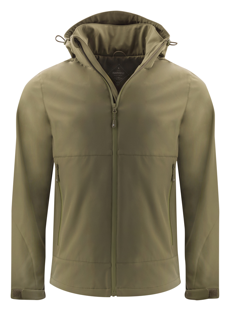Wind- en waterafstotende softshell jas. Omgedraaide, waterdichte ritssluiting vooraan en aan de zijzakken. Binnenzak aan de linkerzijde met ritssluiting. Afneembare capuchon. Aanpasbare velcro sluiting aan de manchetten. De capuchon en de zoom zijn aanpasbaar met elastische trekkoorden. Verborgen ritssluiting aan de binnenzijde voor print- en of borduring.