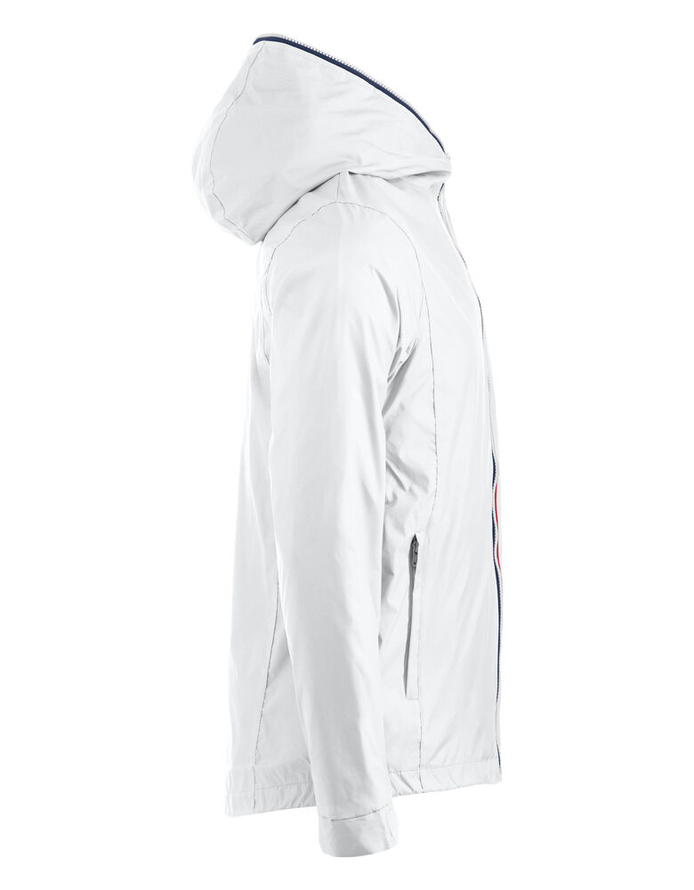 Opvallende, lichtgewicht jas met rits die tot en met de capuchon dicht kan. De jas is uitgerust met opvallende contrasterende strepen die langs de rits lopen voor een unieke, opvallende uitstraling. De jas is gemaakt van hoogwaardig ripstop polyester met PU coating ter bescherming bij regenachtig weer. De jas is gemakkelijk te veredelen dankzij de drukkersrits aan de binnenzijde.