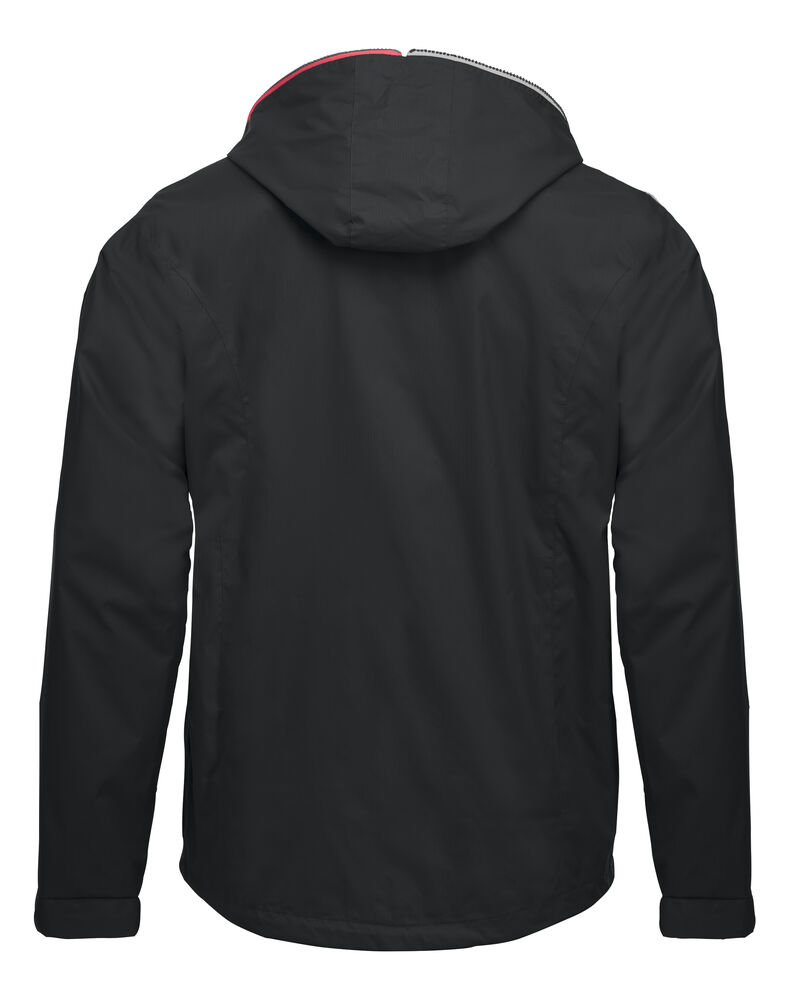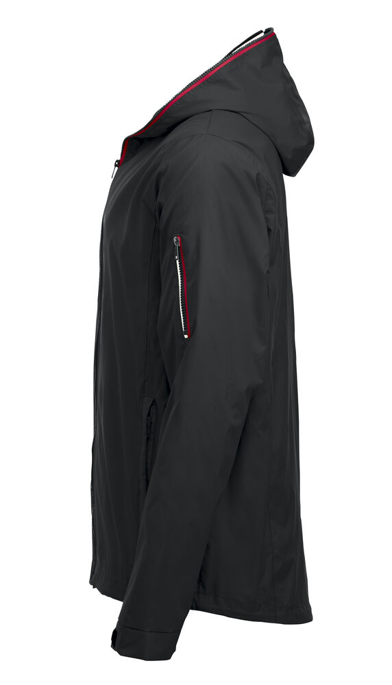 Opvallende, lichtgewicht jas met rits die tot en met de capuchon dicht kan. De jas is uitgerust met opvallende contrasterende strepen die langs de rits lopen voor een unieke, opvallende uitstraling. De jas is gemaakt van hoogwaardig ripstop polyester met PU coating ter bescherming bij regenachtig weer. De jas is gemakkelijk te veredelen dankzij de drukkersrits aan de binnenzijde.