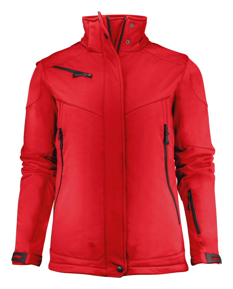 Gevoerde softshell met afneembare capuchon, voorgevormde mouwen en trekkoord onderaan de zoom. De mouwen zijn verstelbaar met een velcro. Voorzakken en borstzak met ritssluiting, twee binnenzakken met ritssluiting en een zak in membraanvoering.