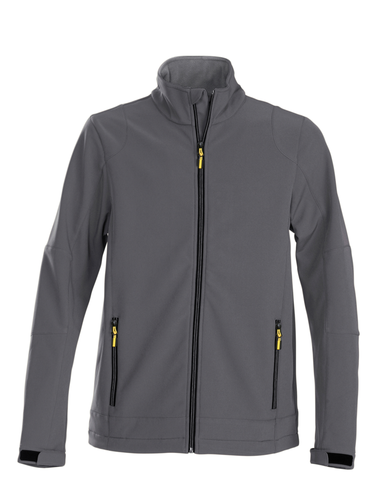 Softshell jas met tweekleurige ritssluiting vooraan en zijzakken met ritssluiting. Aanpasbare mouwen met velcrosluiting en trekkoorden aan de boord onderaan. De zippullers kunnen indien gewenst vervangen worden door één van de andere beschikbare kleuren.