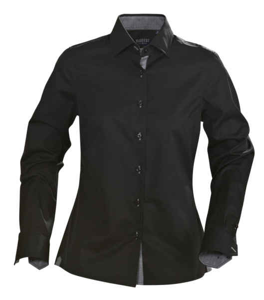 Dameshemd van hoge kwaliteit in gekamd katoen met contrastkleur onder de kraag, aan de knopenband, manchetten en neklint. Voorzien van extra versteviging aan de naden, kraag en manchetten. De stof is nabehandeld met easy care voor makkelijk wassen en strijken. Moderne pasvorm met naden op de rug. Dit hemd is op aanvraag ook verkrijgbaar in korte mouwen. Oeko-Tex 100 gecertificeerd.