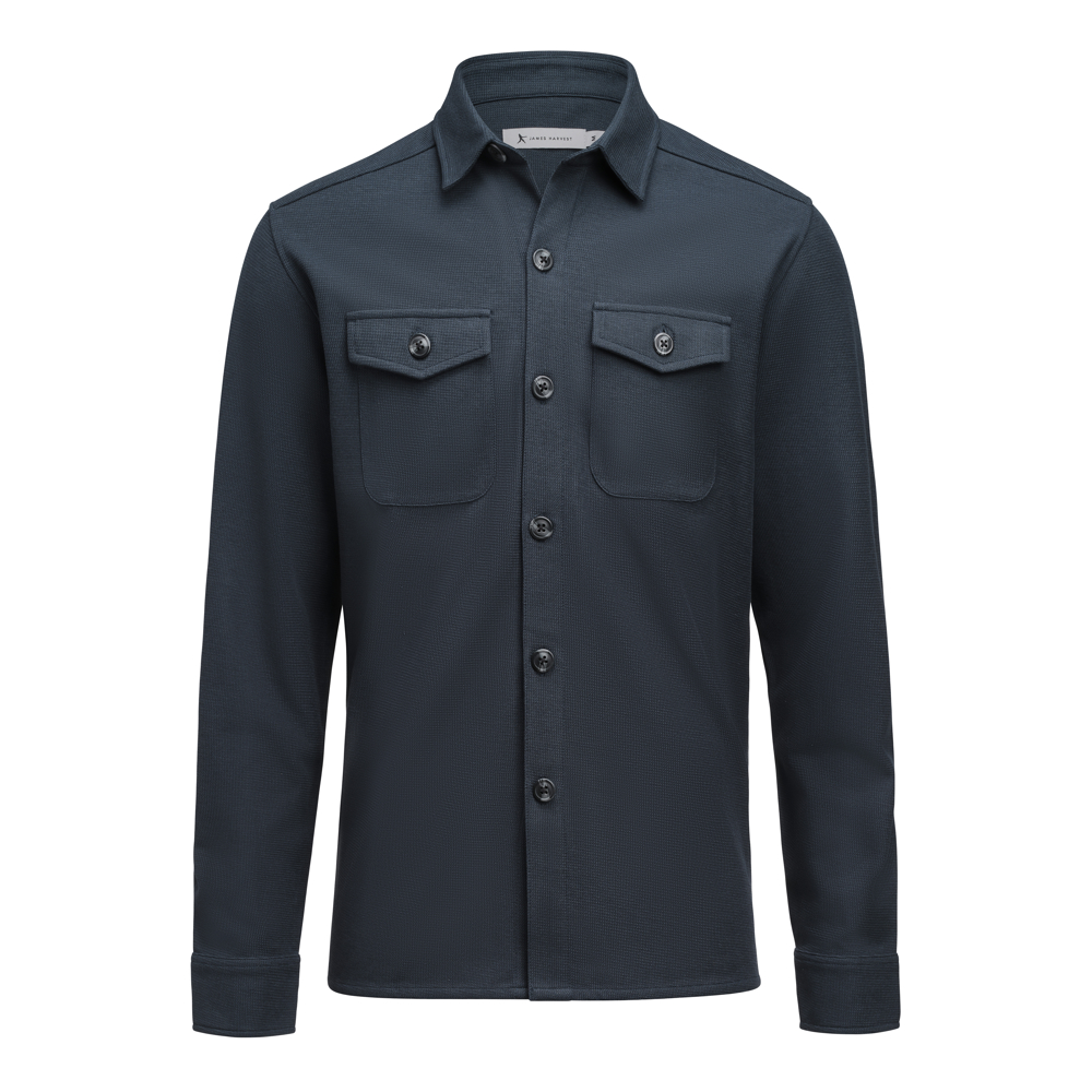 Modern Overshirt, gemaakt uit een wafelstructuur breisel. De stof bestaat uit organisch katoen en gerecyled polyester. De contrast knopen en borstzakken zorgen voor een eigentijdse look. Beschikbaar in Unisex Fit.