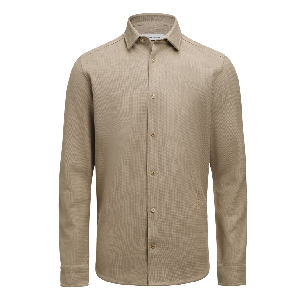 Hicksville is een modern hemd, gemaakt uit een wafelstructuur breisel. De stof bestaat uit organisch katoen en gerecyled polyester. De verborgen button down kraag en toon op toon knopen zorgen voor een strakke en eigentijdse look. Beschikbaar in Tailored Fit.