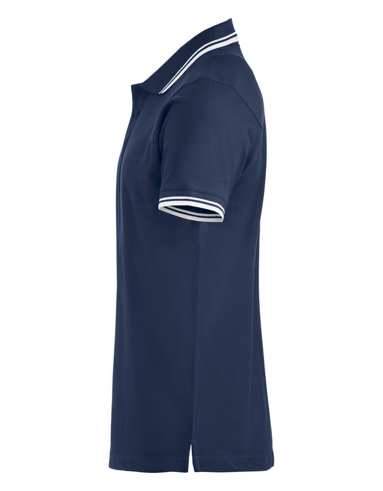Moderne polo piqué met opvallende contrasterende details in de kraag en bij de mouwen. De polo is...meer