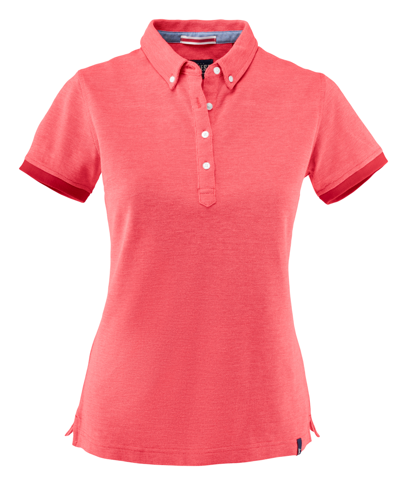 Polo piqué met buttondown kraag en details in oxford aan de binnenzijde. Contrasterende ribboord aan de manchetten en lusje met Harvest-logo aan de zoom.
