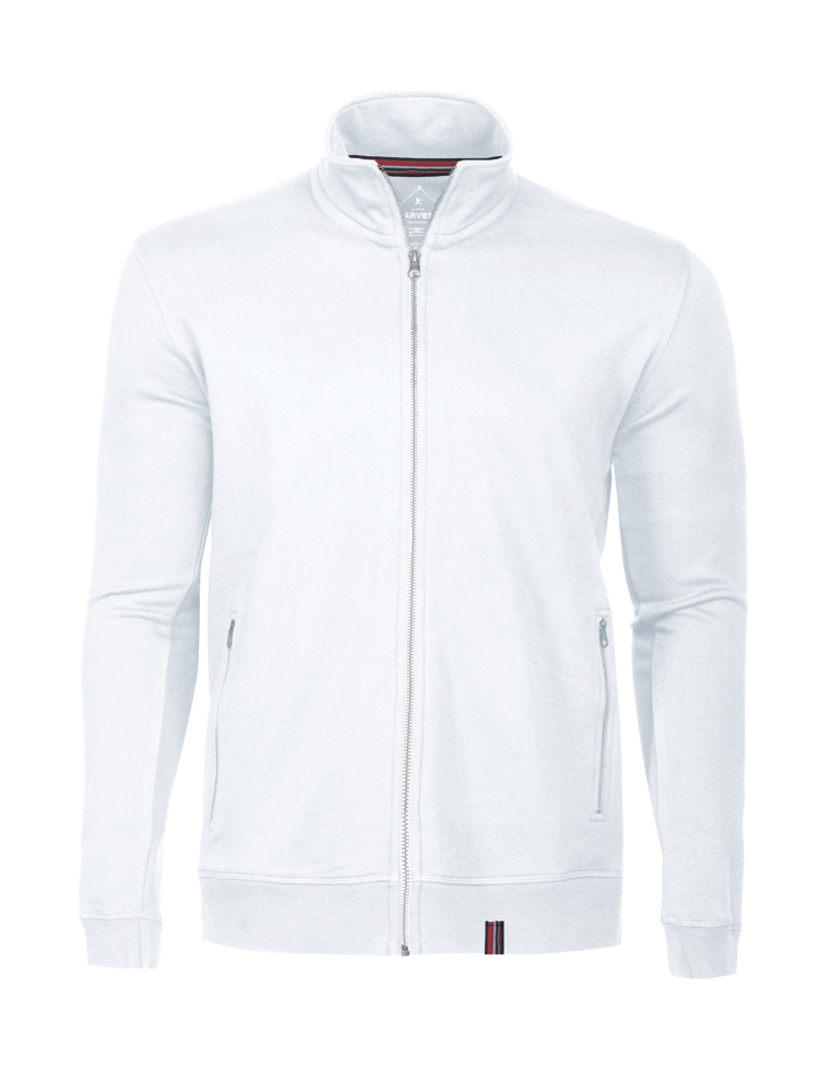 Sweatshirt met lange ritssluiting in zware jersey kwaliteit met ongeborstelde binnenkant. Contrasterend en decoratief lint in de nek, aan de binnenzijde langs de ritssluiting en als zijlabel aan de boord onderaan. Zijzakken met ritssluiting en halvemaanvormige