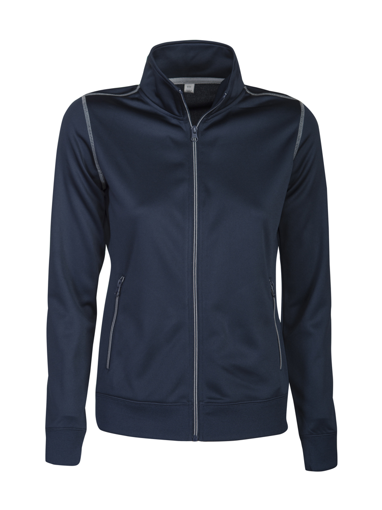 Polyester sweatshirt met lange ritssluiting. Contrasterende flatlock naden aan de mouwopening en stiksels van ritssluiting in grijze contrasterende kleur. Binnenzijde is geborsteld voor een zacht en warm gevoel.