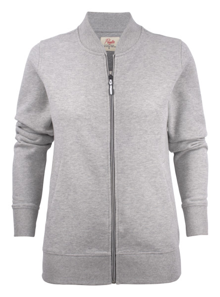 Sweatshirt met volledige, tweekleurige ritssluiting vooraan en lichtgebogen steekzakken. Het damesmodel heeft paspelzakken en een geribde opstaande kraag. De zippullers kunnen indien gewenst vervangen worden door één van de andere beschikbare kleuren. Oeko-Tex 100 gecertificeerd.