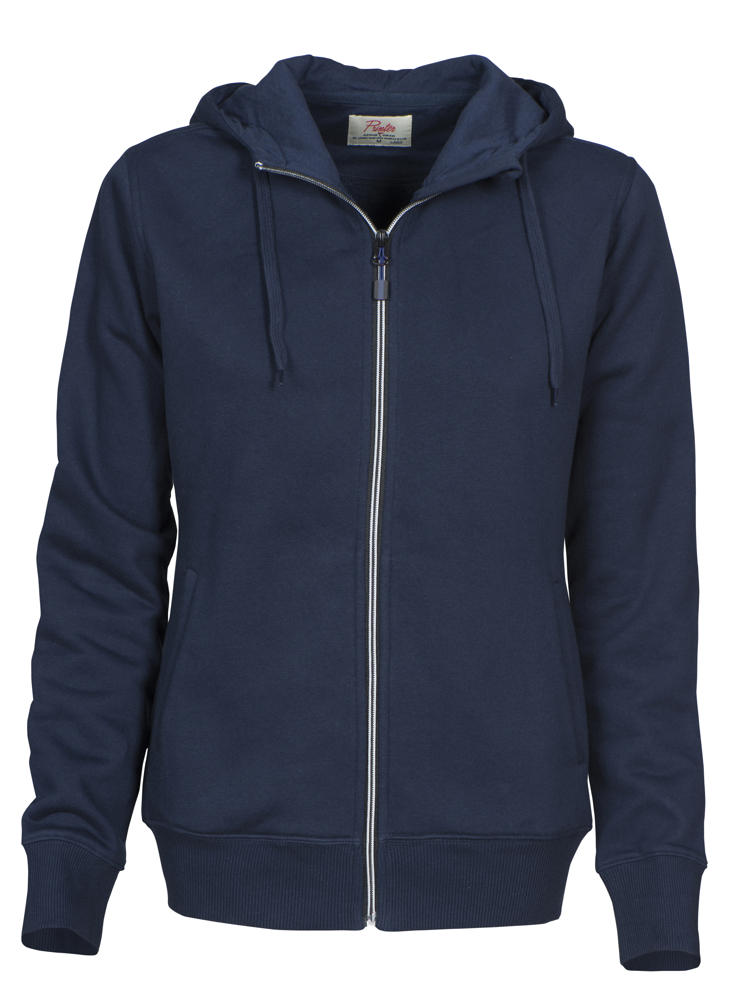 Sweatshirt met capuchon met tweekleurige ritssluiting vooraan en lichtgebogen steekzakken. De binnenkant van de capuchon is single jersey. De zippullers kunnen indien gewenst vervangen worden door één van de andere beschikbare kleuren. Oeko-Tex 100 gecertificeerd.