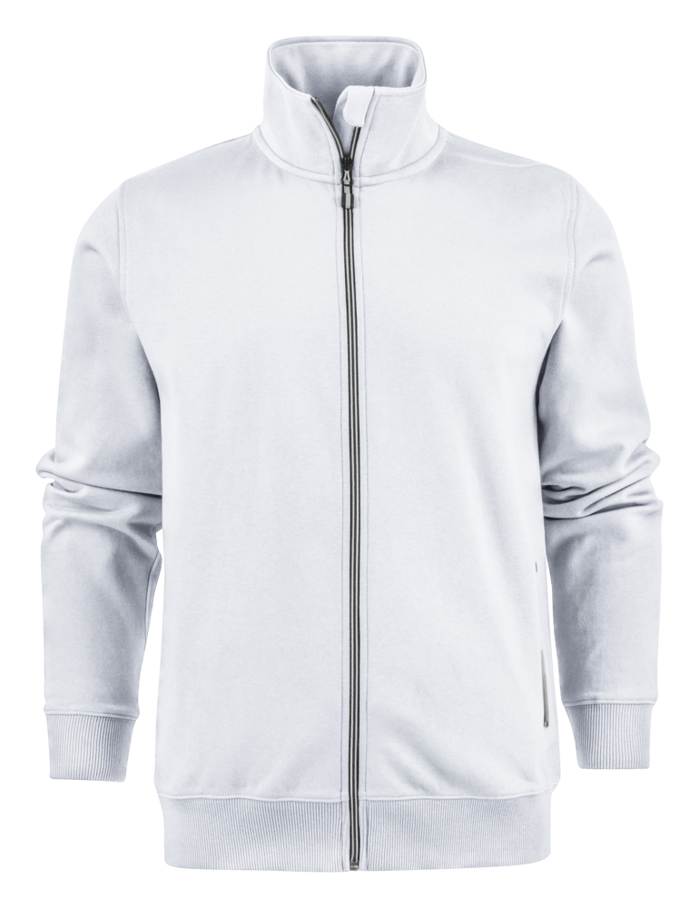 Sweatshirt met volledige, tweekleurige ritssluiting vooraan en lichtgebogen steekzakken. Het damesmodel heeft paspelzakken en een geribde opstaande kraag. De zippullers kunnen indien gewenst vervangen worden door één van de andere beschikbare kleuren. Oeko-Tex 100 gecertificeerd.