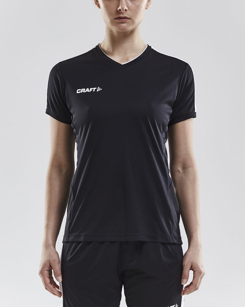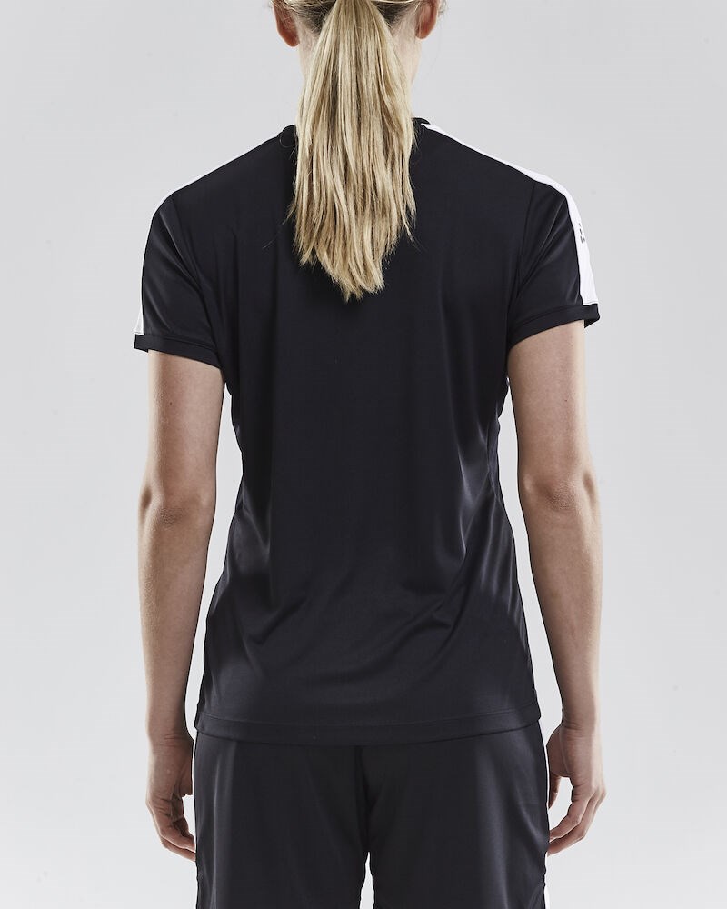 Training tee made of stretchy and functional fabric offering superior moisture transport for maximum performance. Mesh panels in the armpits provide efficient body-temperature management while great elasticity and ergonomic design ensure comfortable fit and optimal freedom of movement. Double-layer V neck in contrast color for a sharp look. Female fit.