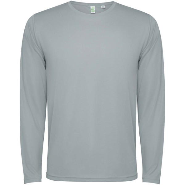 Unisex technisch T-shirt met lange mouwen voor kinderen. Kraag met bijpassende naden. Achterzoom iets langer dan de voorkant. Zijnaden iets naar voren geplaatst.