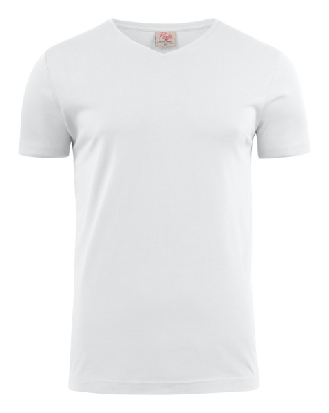 Moderne, aansluitende V-hals T-shirt met versterkte schoudernaden en dubbelgestikte halsopening. Elastaan in boord. Geribde nek in vier lagen. Oeko-Tex 100 gecertificeerd.