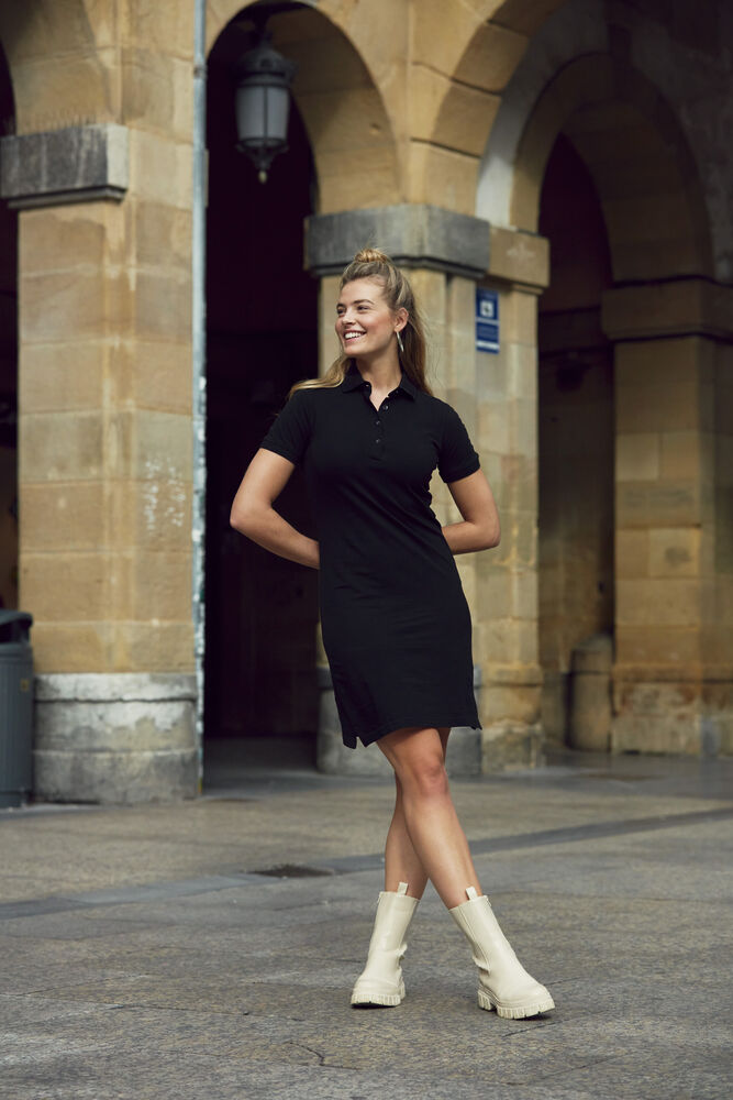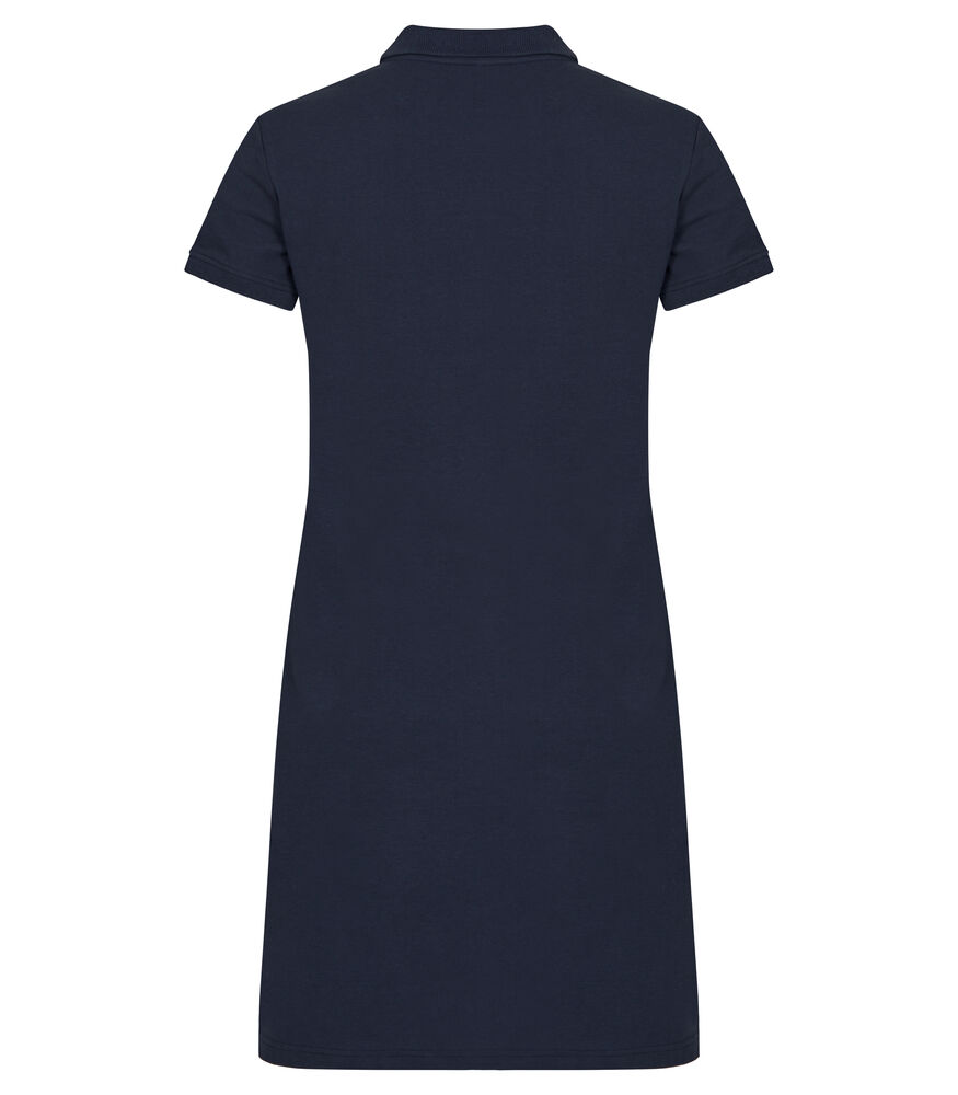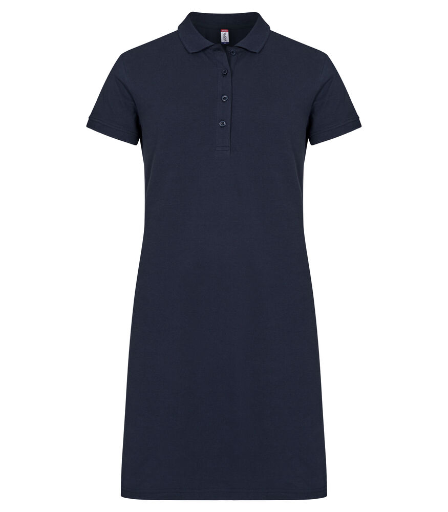 Marietta is een tijdloze polojurk met zijsplitten en vier ton sur ton knopen. Deze jurk is afgewerkt met verstevigde necktape en een gemakkelijk te verwijderen label voor rebranding.