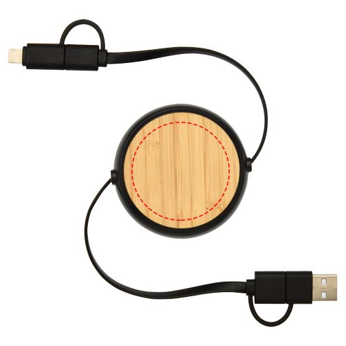 Chechia 5-in-1 100 cm intrekbare datasynchronisatie- en 45 W snellaadkabel van gerecycled plastic met bamboe details