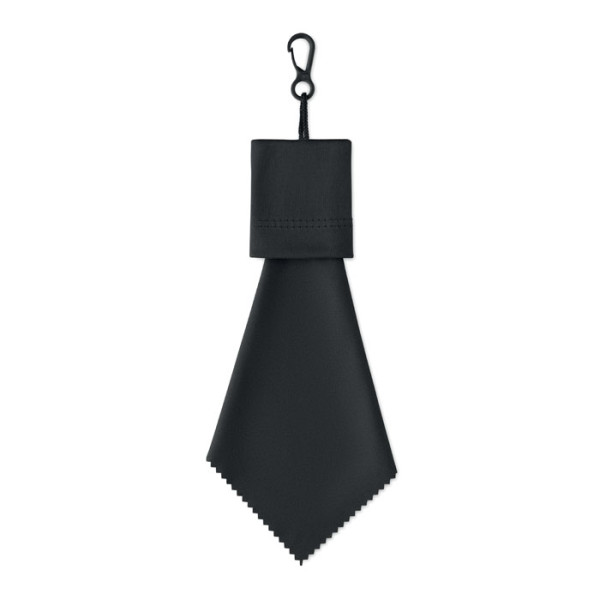RPET reinigingsdoekje met vast zakje om in op te bergen, inclusief PP plastic ophanghaak.