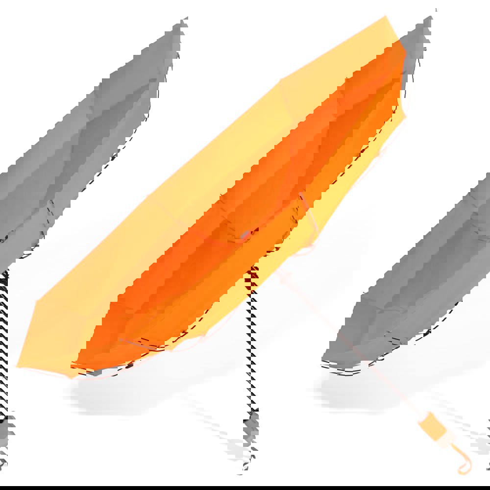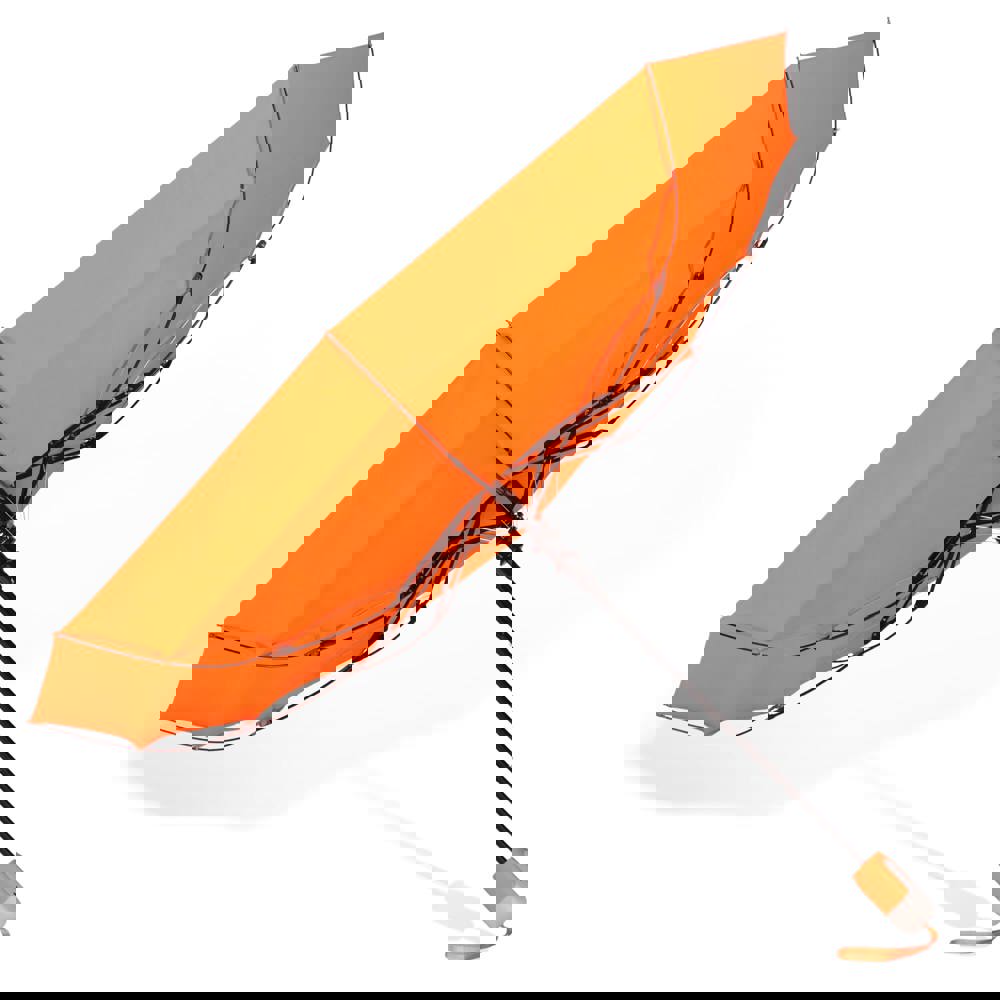 Opvouwbare paraplu met ergonomisch handvat. Het frame is deels gemaakt van glasvezel voor extra stevigheid. Het zwarte frame contrasteert mooi met het gekleurde pongee polyester doek van Pongee polyester. Wordt geleverd in een hoesje.