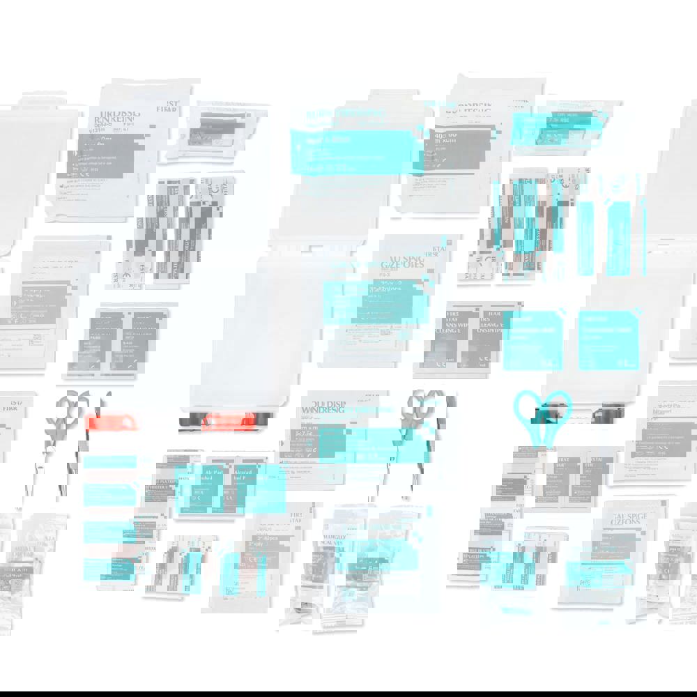 Uitgebreide EHBO set in stevige PP-doosje, voldoet aan Europese normen. Geschikt voor thuis,...meer