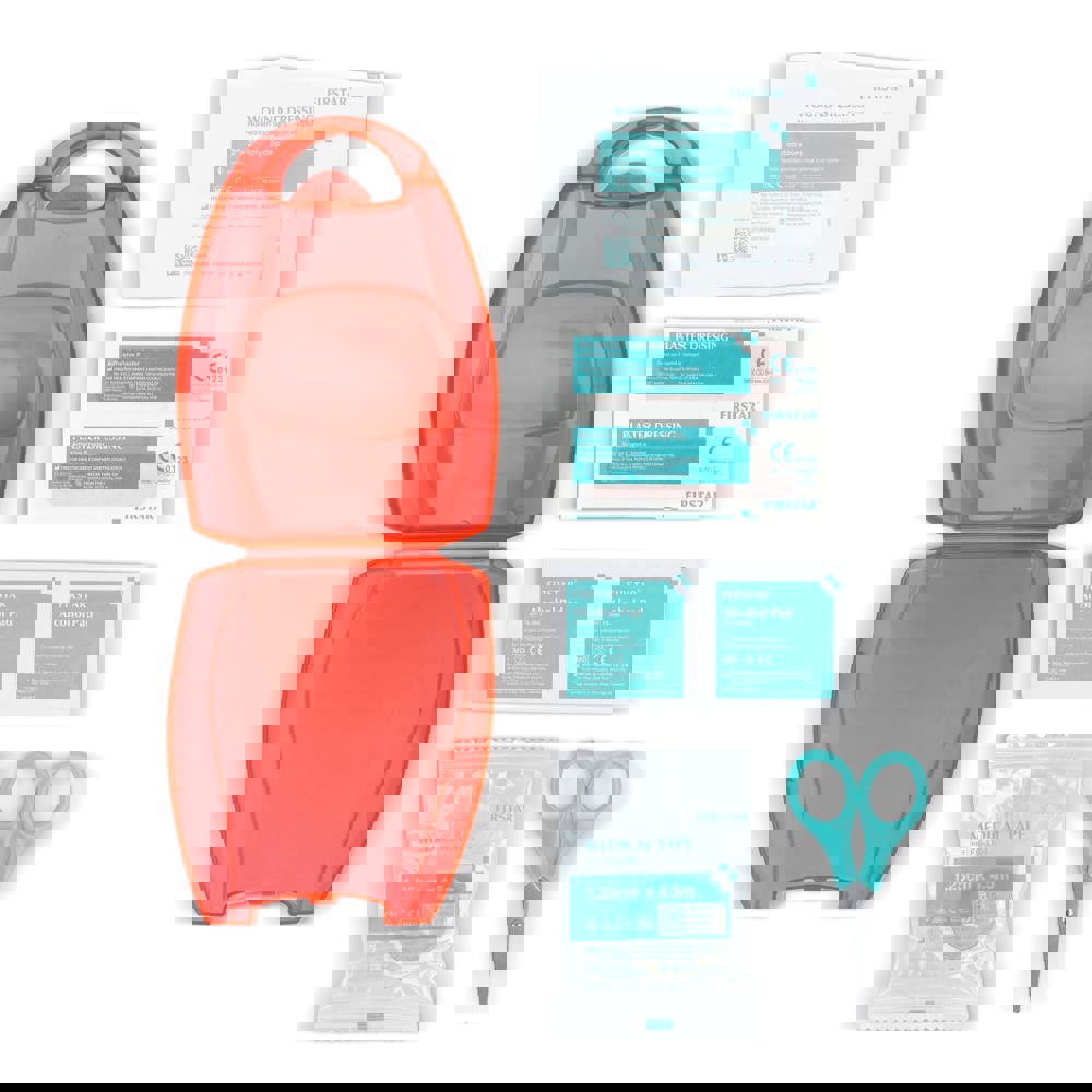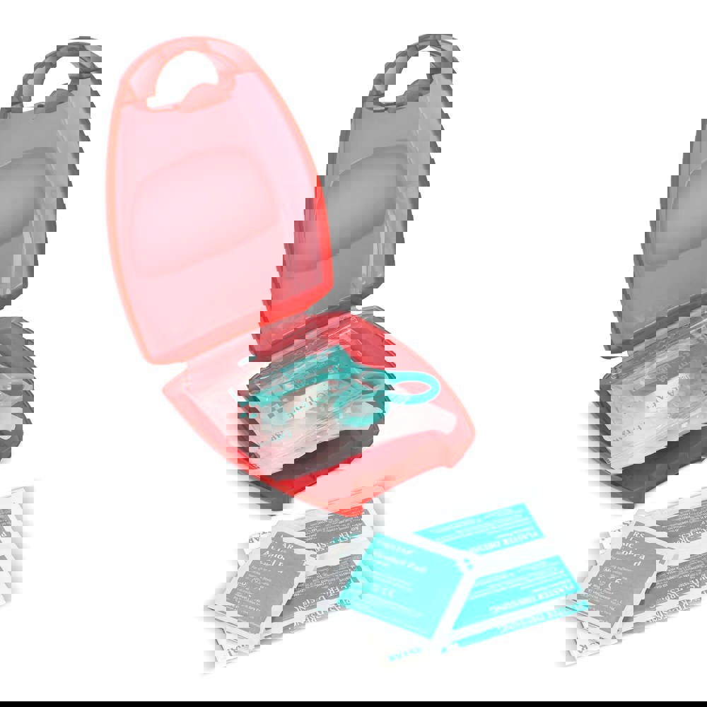 Deze compacte EHBO set wordt geleverd in een stevige PP-doosje en voldoet aan Europese normen. Perfect voor reizen, kantoor, auto of giveaways. Bevat essentiële items voor kleine verwondingen. Inhoud: 2 × alcoholpads, 5 × pleisters 72 × 19 mm, 1 × schaar, 1 × medische tape 1.25 × 4.5 m, 1 × non-woven sponzen 2" × 2" 4-laags (5 stuks/pack).