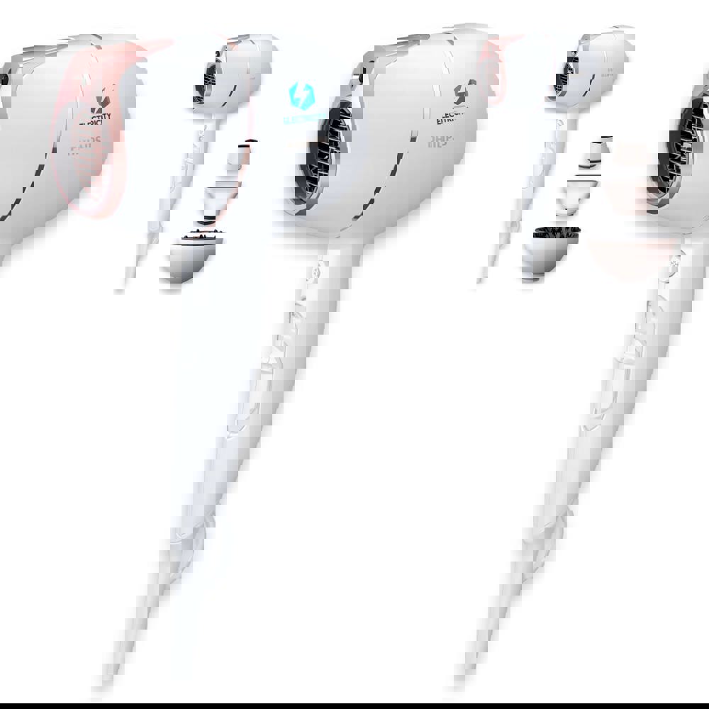 Ontdek de Philips-föhn met SenseIQ-technologie voor een gepersonaliseerde föhnervaring. Deze geavanceerde föhn houdt continu je haartemperatuur in de gaten met een infraroodsensor, die tot wel 4000 keer per sessie de temperatuur aanpast om oververhitting te voorkomen. Dit zorgt ervoor dat tot wel 90% van het natuurlijke vochtgehalte van je haar behouden blijft, wat resulteert in een prachtig en verzorgd resultaat bij elke droogbeurt. Terwijl andere föhns alleen de luchtstroomtemperatuur meten, biedt de SenseIQ-technologie specifieke bescherming door de temperatuur van je haar te monitoren. De föhn wordt geleverd met een droogmondstuk, een stylingmondstuk en een diffuser voor krullen met extra volume, zodat je je haar optimaal kunt verzorgen en stylen.
