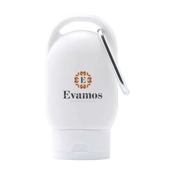 Beschermende zonnebrandlotion (factor 30) in een handzaam, kunststof flacon met gekleurde dop en bijpassende metalen karabijnhaak. Met één klik te bevestigen aan je tas, rugzak of broeklus. Houdbaar tot 12 maanden na opening. Inhoud 30 ml. Ingrediënten: water, glycerin, ethylhexyl methoxycinnamate, octocrylene, Ethylhexyl Salicylate, Isopropyl myristate, cetearyl alcohol, butyl methoxydibenzoylmethane, ceteth-25, glyceryl stearate, titanium dioxide, dibutyl adipate, phenoxyethanol, parfum, methylparaben, propylparaben, BHT, disodium EDTA, vanillin, coumarin.